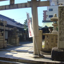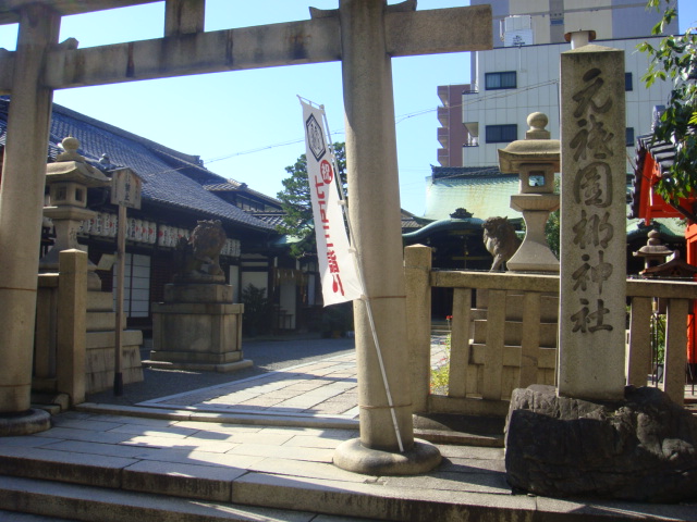 四条通から壬生寺方面に向かう細い道の角にある神社で、八坂神社の古跡にあたる場所に鎮座しています。境内には左に梛(なぎ)神社、右に隼神社の二つの社殿が、仲良く並んでいます。四条通りの南側角にあるため、鳥居は北側と東側の二か所に鳥居がありますが、東側が石柱もあり正門のようです。壬生寺へ訪れる際にはお寄りください。