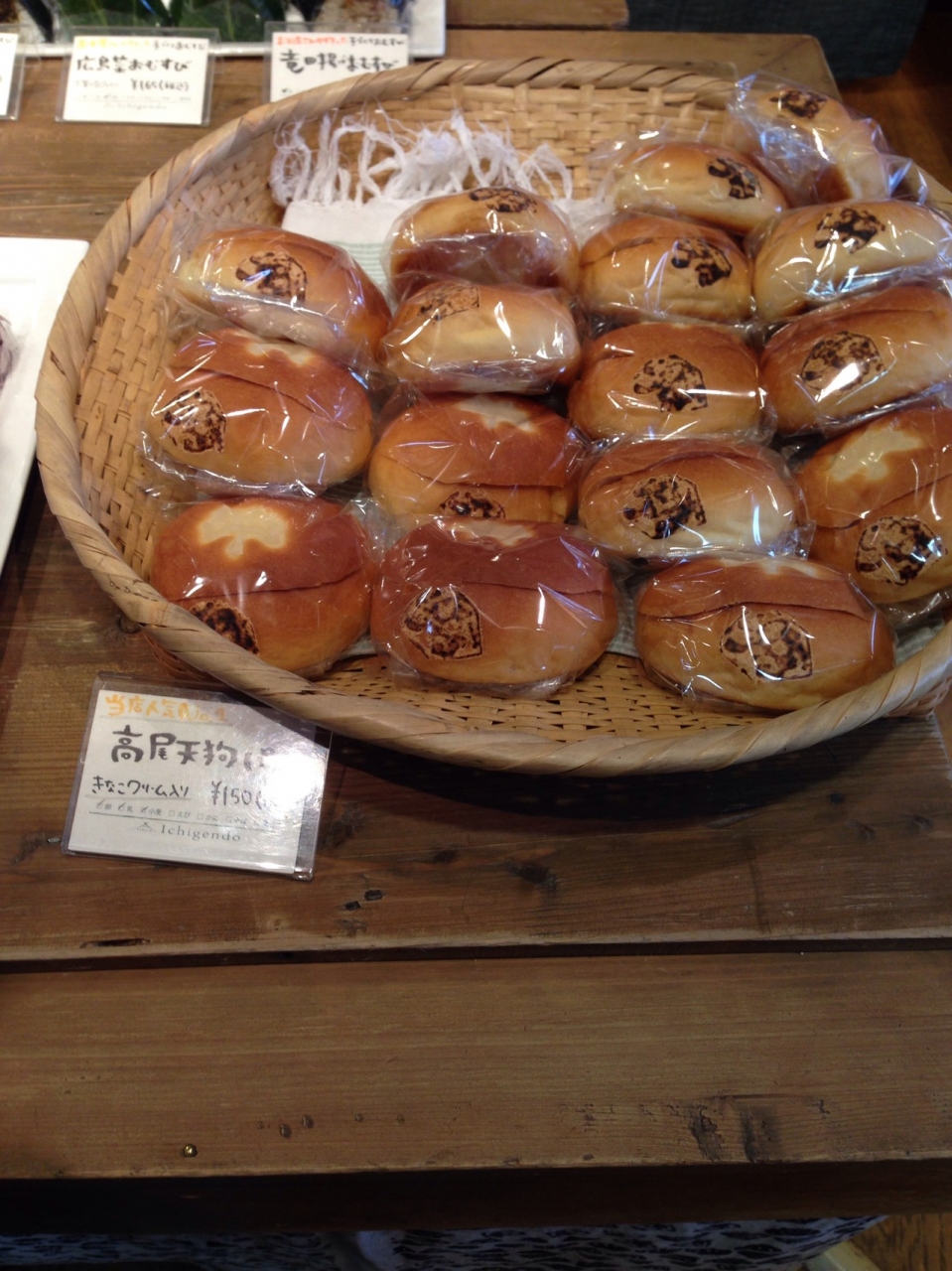 高尾駅北口改札すぐ横にあります。入るとすぐの場所には、パンやおにぎりが陳列してあります。名物は天狗パンです。歯ざわりがザラザラしたきなこクリーム入りです。おにぎりも手作りでずっしりしています。朝たくさん並んでたパンやおにぎりも、午後には全て売り切れてました。店の奥にはカフェがあり、カレーなどの食事もできます。
