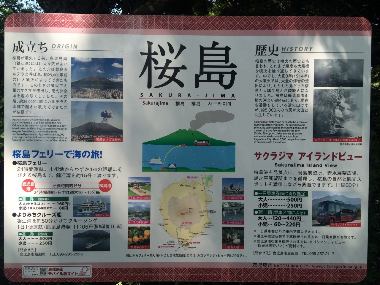 訪れた日は、噴火をして煙っていて、煙がもくもくと少々見づらい桜島でしたが、はじめて見る私にとっては、噴煙が上がる桜島もまた感動でした。