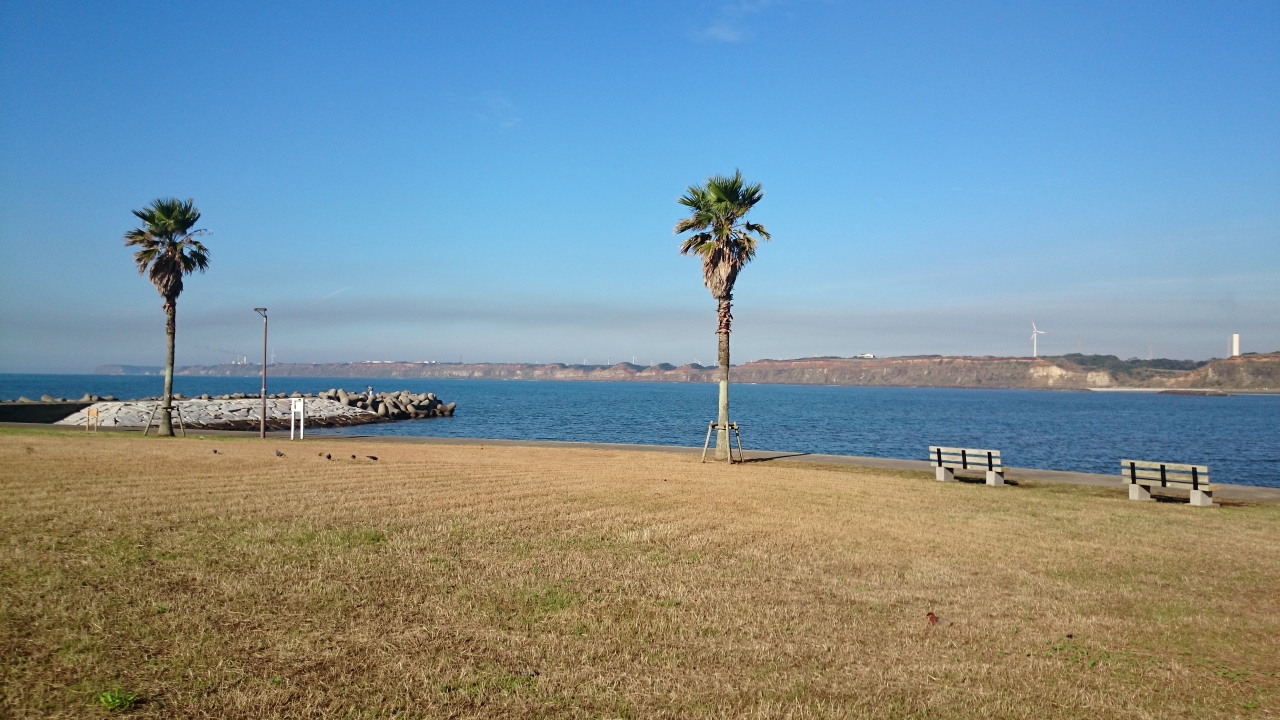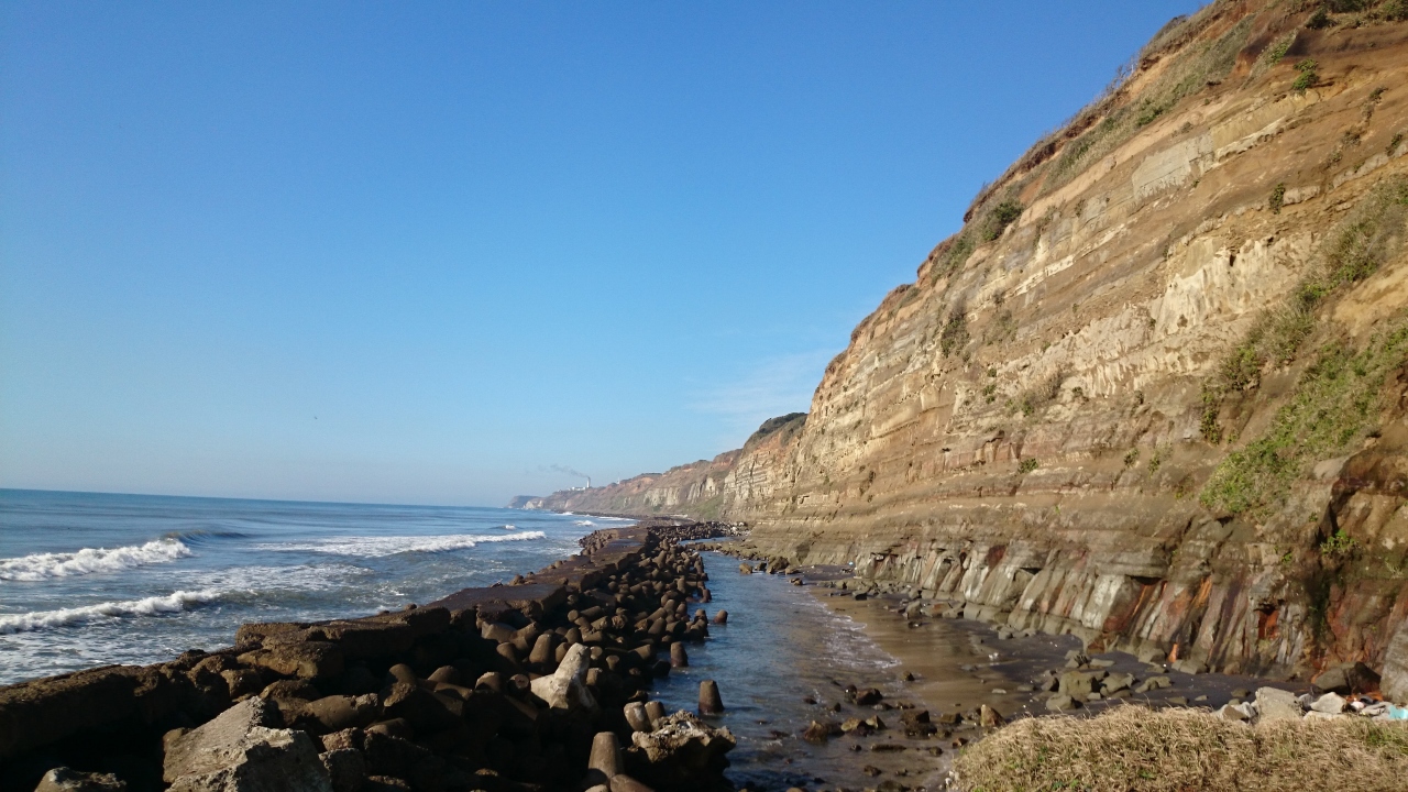 最初は銚子マリーナのほうから見ました。屏風状の断崖が横に長く伸びているのはわかるのですが、色が一定でなくあまり美しいとは感じませんでした。
