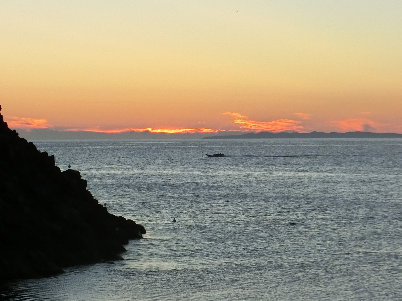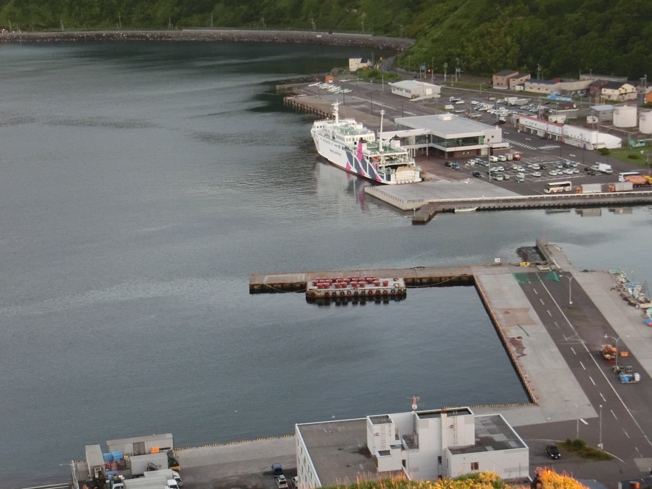 鴛泊港から利尻富士の朝焼けが素敵でした。