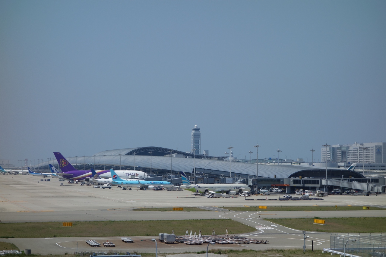 関西国際空港には展望デッキがなく,わざわざバス(無料)に乗ってここまで来ないと飛行機を見ることができません.