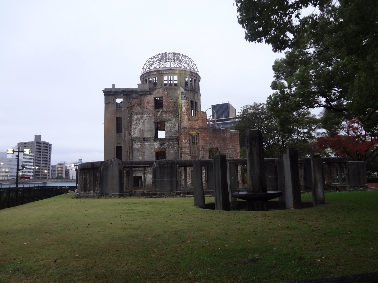 広島は初めて訪れたのですが、雨模様とはいえ、ここと平和祈念館は必ず訪れようと決めていました。建物に触れることはできませんが、70年あまりも過ぎてなお、大切に保存されている様子がうかがえ、原爆投下を忘れまいとされているのがよくわかりました。
