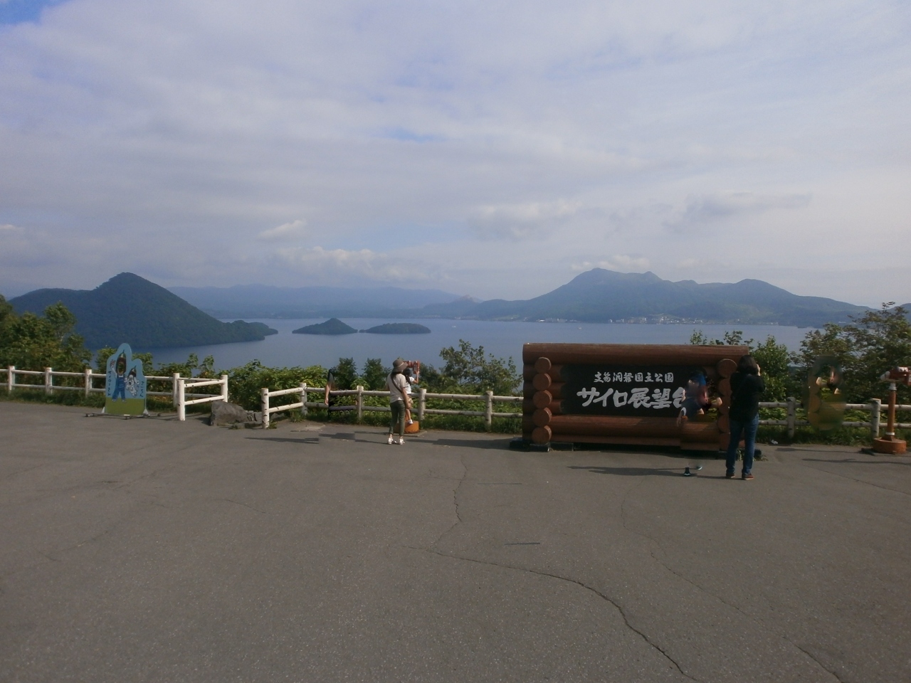 函館から札幌へ向かう途中に、洞爺湖を展望するために訪れました。名前が「サイロ展望台」と言いますが、現地についてその理由が想像着きました。駐車場でバスから降りると、下が黄色上が茶色レンガのサイロの建物に、白地で大きく「洞爺湖展望台」と表してありました。