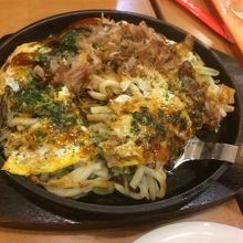 帰りによりました。広島空港のフードコートの入り口にあるお好み焼き屋さんです。広島駅では混んでいたのでこちらで最後に食べました。 店内は混んでいたので、外の座席で食べました。お好み焼きと生ビールで乾杯しました。