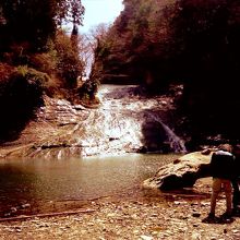 千葉県では数少ない景勝地である養老渓谷。その中の最大の見所である滝に続く遊歩道です。歩道の先には滝が落ちていますが滑滝なので迫力はありません。本流に架かっていますが水量が少ないので岩肌が濡れている程度でした。侘しい風景です。