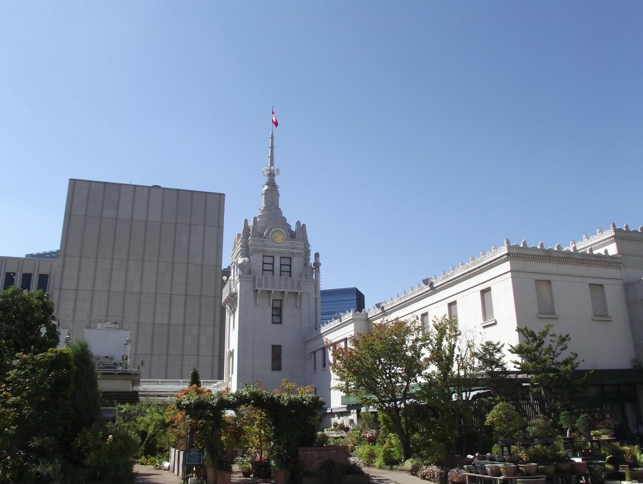 屋上には、三囲神社や三越マークの旗が風になびく西洋風の塔頂などもあり、買物の合間に青空の下で一息入れるのも良いものです。