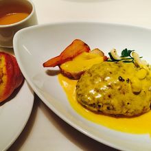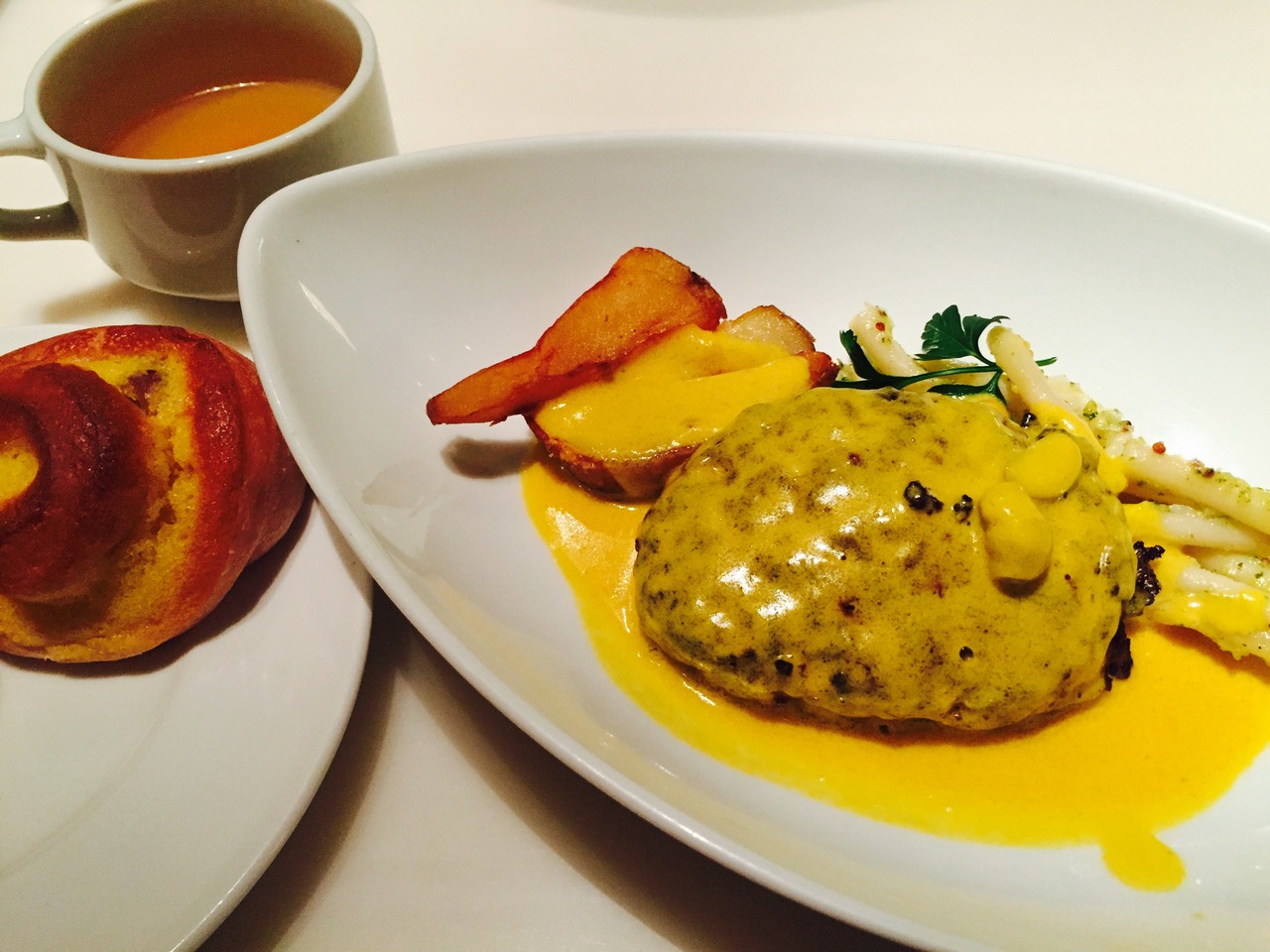 そしてハンバーグに季節限定のソースが登場していて、今回は秋らしいかぼちゃのクリームソースでした。