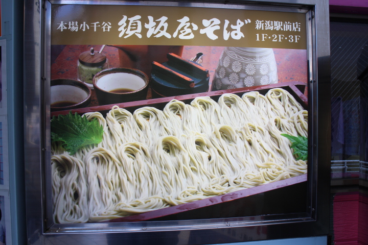 須坂屋そばでは、そばのつなぎに布海苔(ふのり)という海藻を使った新潟のそばが食べられる。海草を使っているだけあって食感がつるつるして独特です。