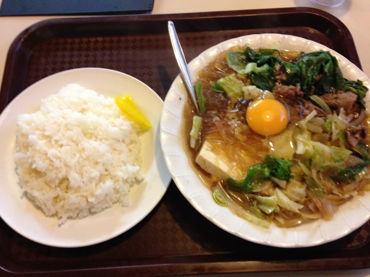 那覇市内では定番の24時間営業の食堂です。ほとんどのメニューが500円~650円。ご飯の量も多めですが、100円プラスでさらに大盛りにできます。定番のすき焼きは牛肉と野菜、豆腐などがたっぷり盛られたこの店ならではのもの。とにかくお腹が空いたら、こちらでお腹いっぱい食べるのがよいですよ。他に、牛肉と豆腐のニンニク炒め、ロースカツ定食、フーチャンプルー定食などが好きです。