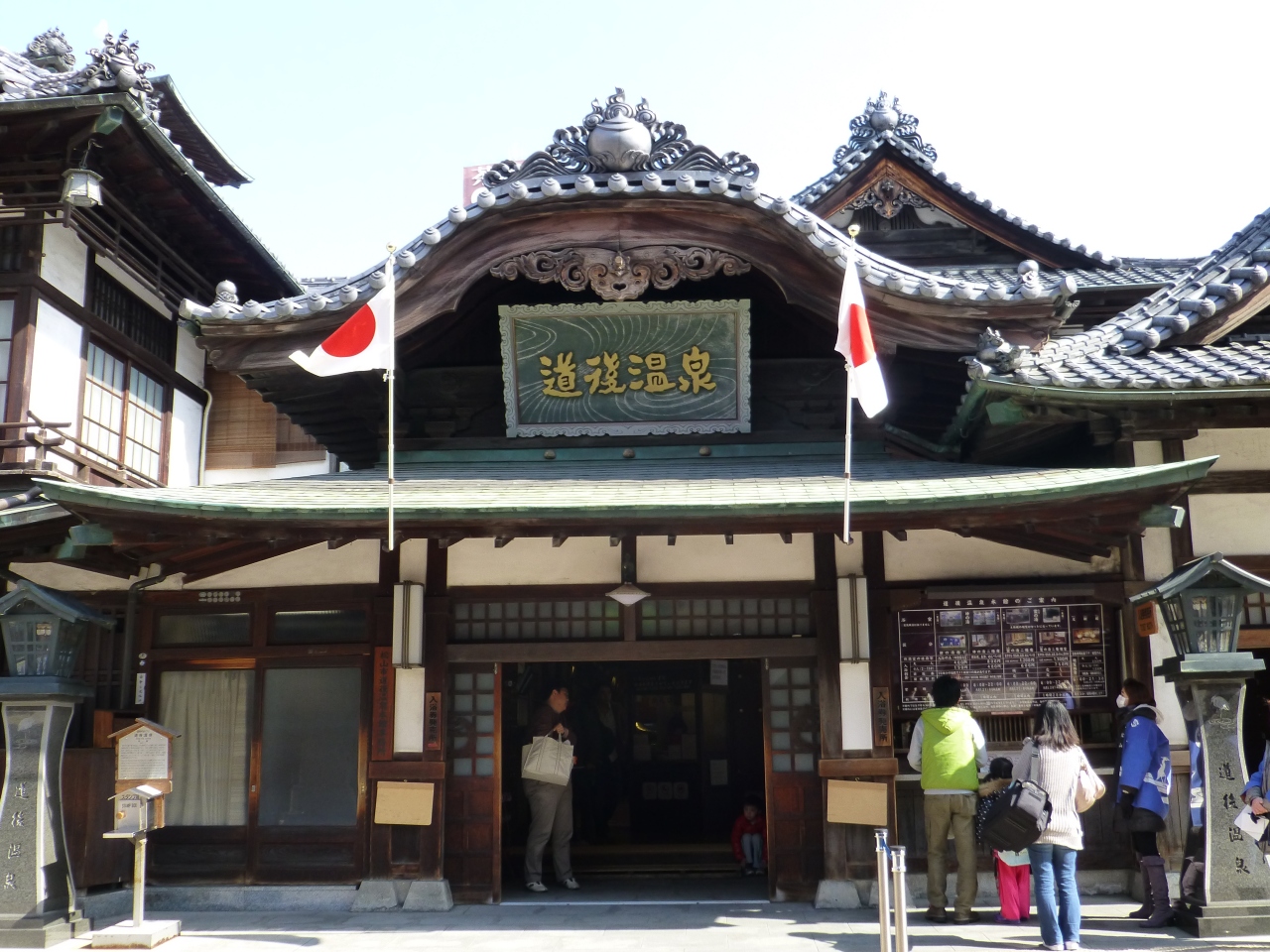 松山駅→(路面電車)→道後温泉駅→(温泉街を見て歩きながら)→坊っちゃん温泉!「坊っちゃん」の浸かった温泉に入浴するのも3回目です(学術会議で来る度に寄ります)。たっぷりした湯口のちょっと熱めの湯に入って休憩室で休むのも一興です(^o^)