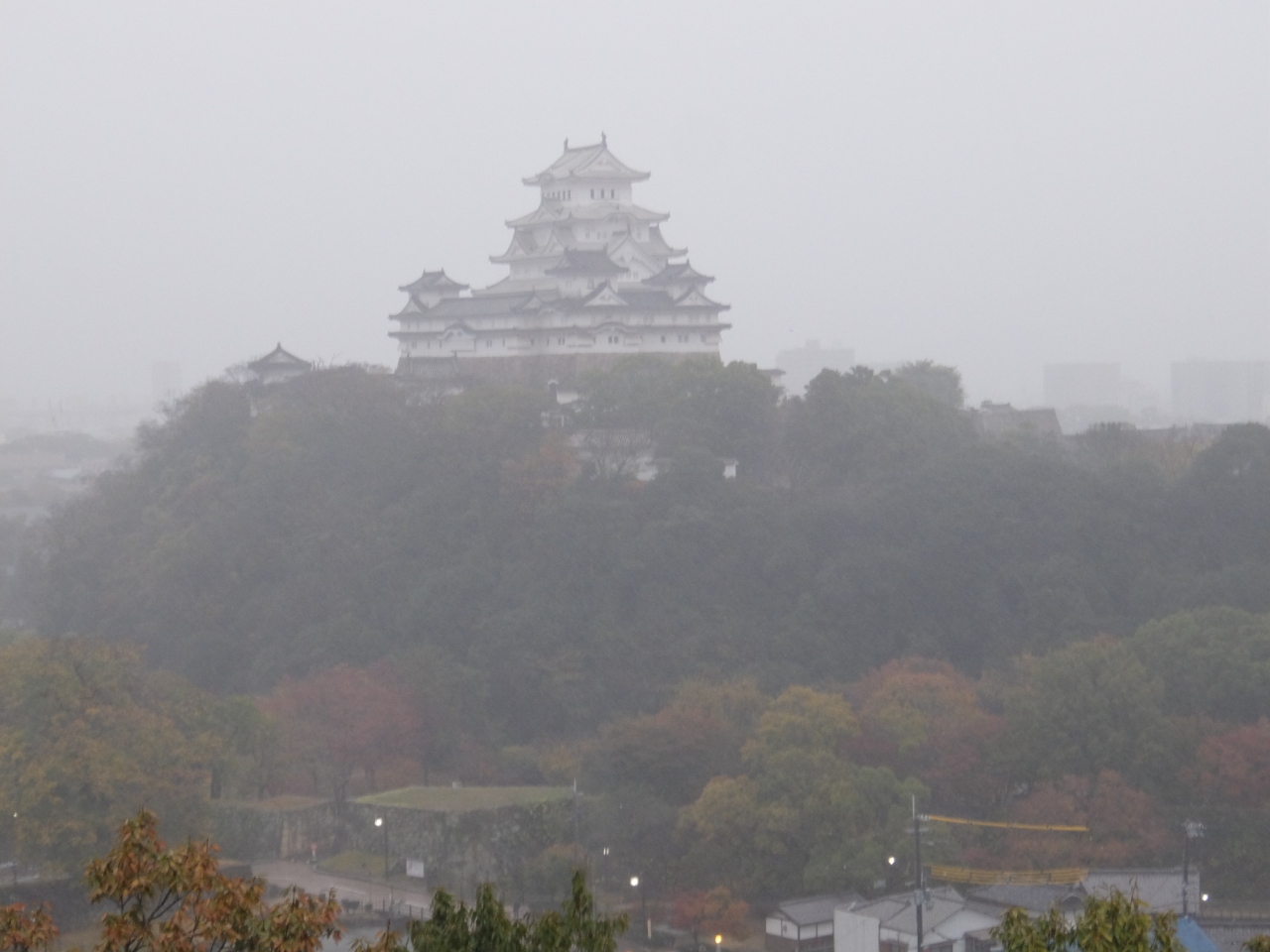 長い階段を登れば,素晴らしい姫路城の姿が見ることができると聞き,雨の降る中行きました。