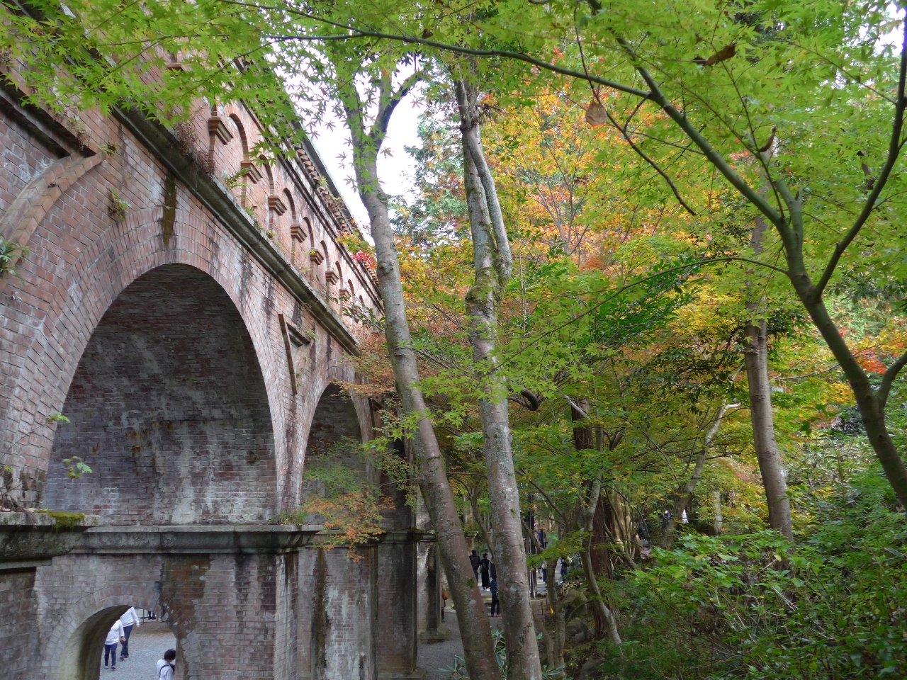 初の京都紅葉旅行2日目の「哲学の道」を金閣寺から散歩して最後に到着したのは、「南禅寺」です。参道には多くの参拝客がおり、三門(日本三大門の一つとのこと)にも登る方がいましたが、赤いレンガで造られた「水路閣」の辺りの人混みは(意外にも)少なく穴場なのかと思いました。