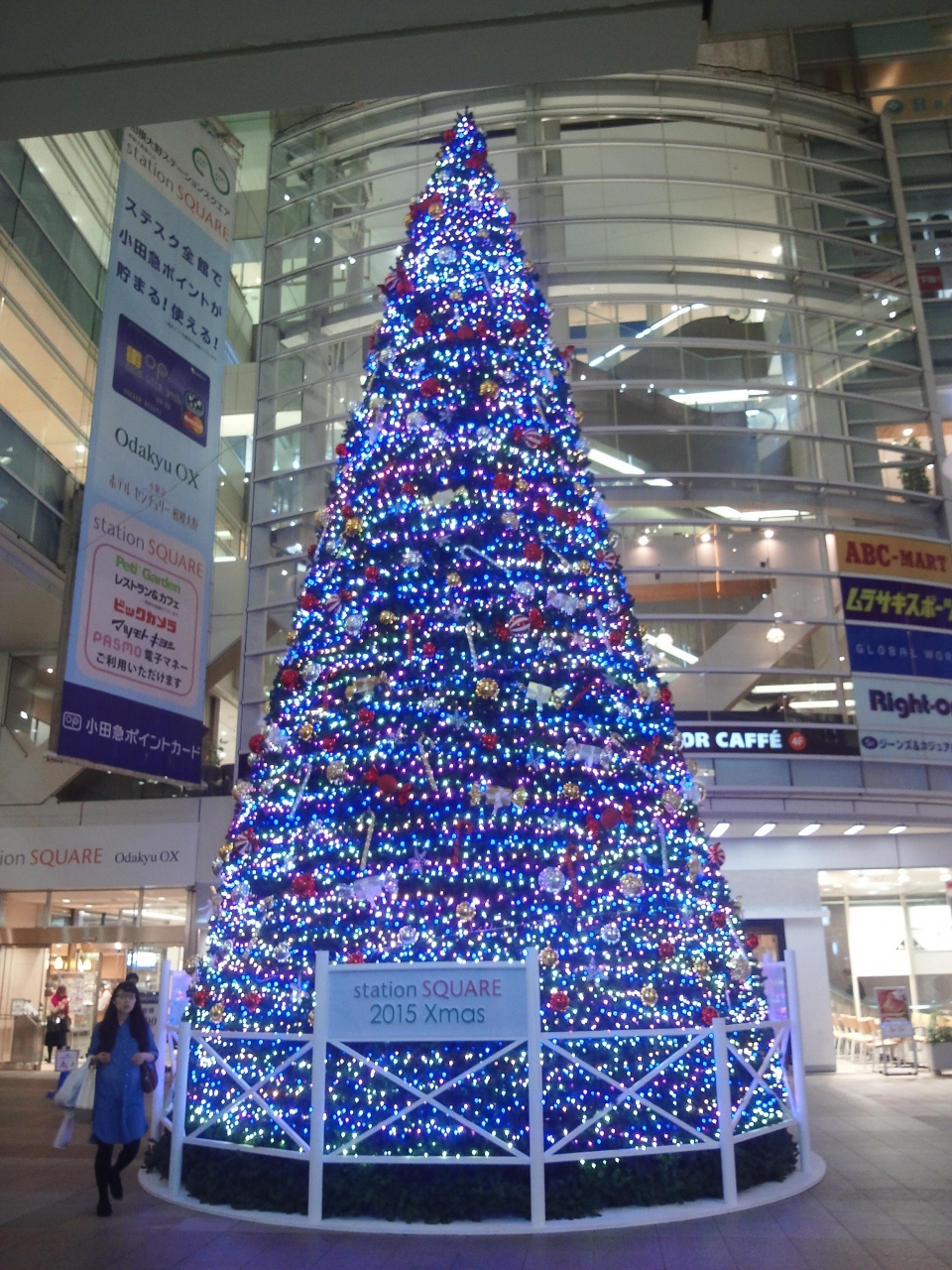 会社から帰る途中、夕食をとるため相模大野で下車しました。改札口を出るとクリスマスツリーのイルミネーションが目に入りました。クリスマスまでまだ1か月半近くありますが、もうセールが始まったようです。ボーノや伊勢丹との競争がある上、先月末には海老名のららぽーとが開業したので、きっと必死なのでしょうね。