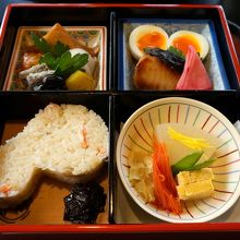 雰囲気は最高。静けさも落ち着き加減も最高でした。最初にお刺身が出た後に、お弁当が来ます。ごはんが瓢箪の格好に形作られていました。湯葉もおいしかったです。このお料理が妥当な値段だと思えるようになるようにもう少し修業します。