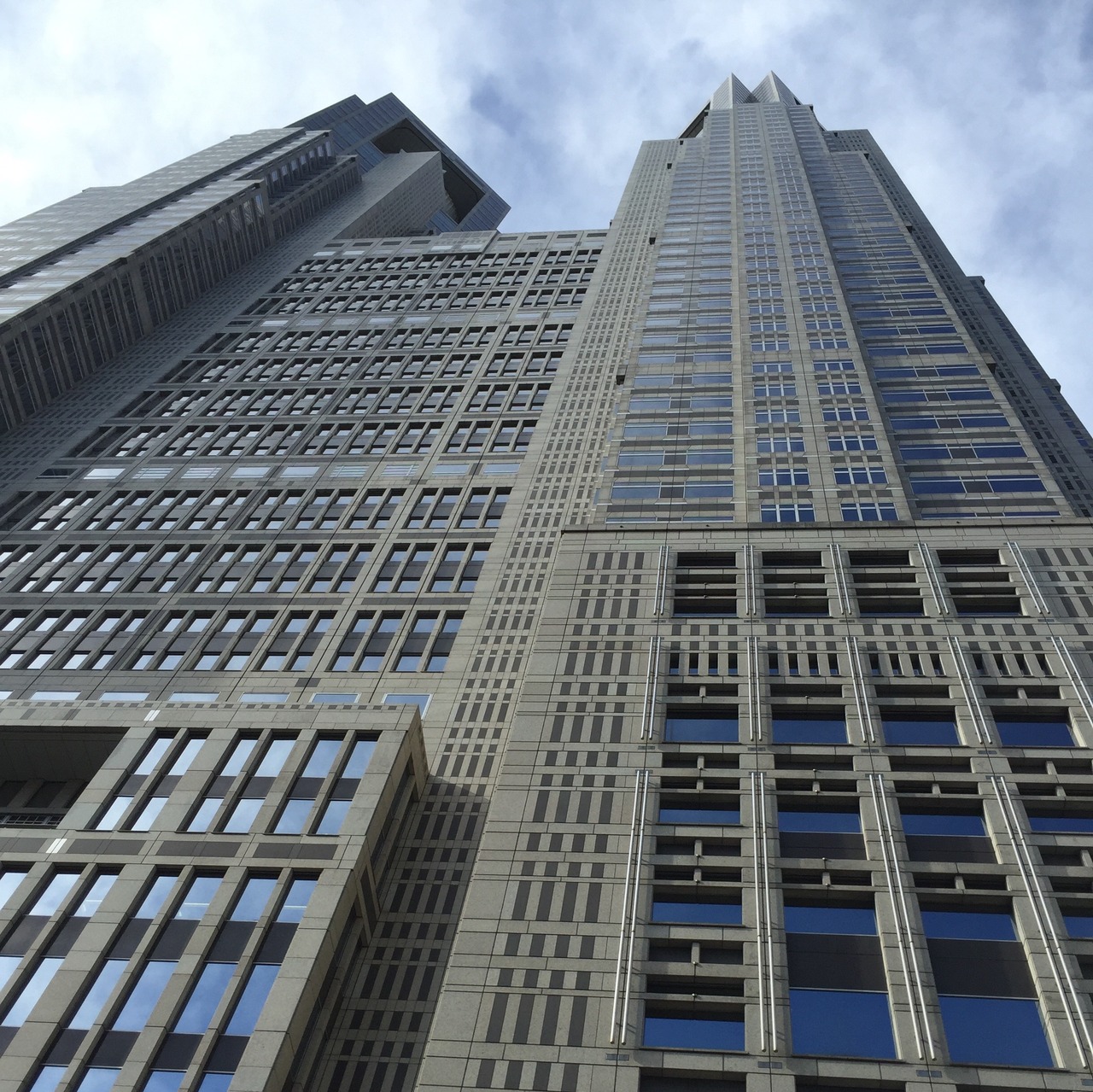 高層ビル群を抜けたところにある、東京都庁。