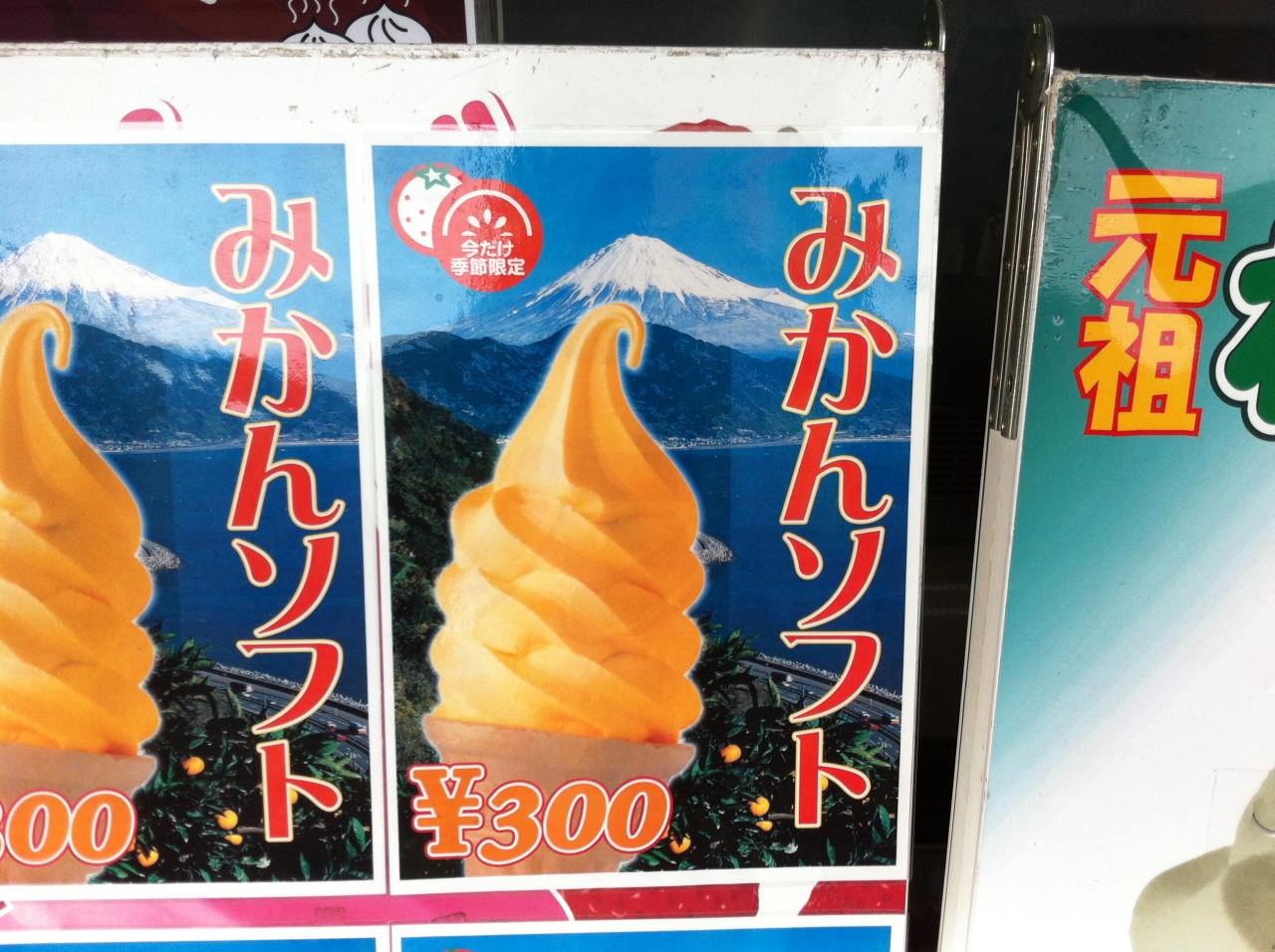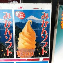 ソフトクリーム目当てで立ち寄りました。バニラのソフトクリームにすりおろした生わさびがトッピングされていて美味しい!他にも季節限定のみかんソフトもありました。写真に比べてかなり薄い色…味はジャンクなオレンジフレーバーで残念。生わさびソフトだけにしておけば良かったな。
