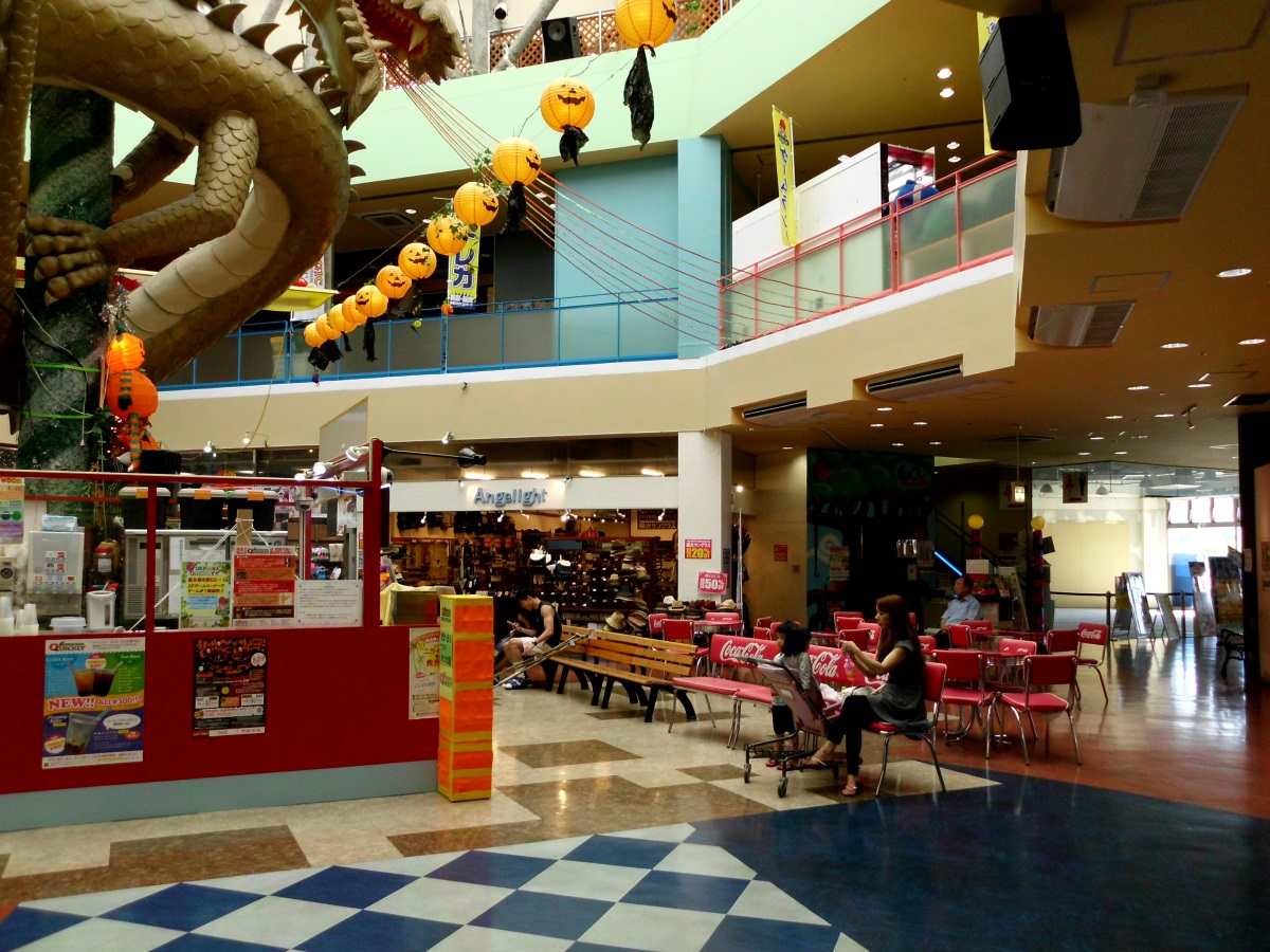 美浜のアメリカンビレッジにあるアミューズメントの複合施設です。建物中央は、多角形の大きな吹抜け構造になっており、館内に入ると1Fのメロンパンとアンダギーの店の甘い香りがします。そのほか1Fに100円シヨップ、文具雑貨、ファッション、CD/DVDショップ等があります。2Fにゲーム・センターがあり、デッキ通路でカーイバルッパーク美浜とうまいもの館と繫がっています。建物自体は悪くないと思いますが、入居しているテナントの商売の演出が下手で、やや活気が無く寂れて見えます。旅行中、小さいお子さんがいるご家庭には、少しの間お子さんを遊ばすのにとても適しています。