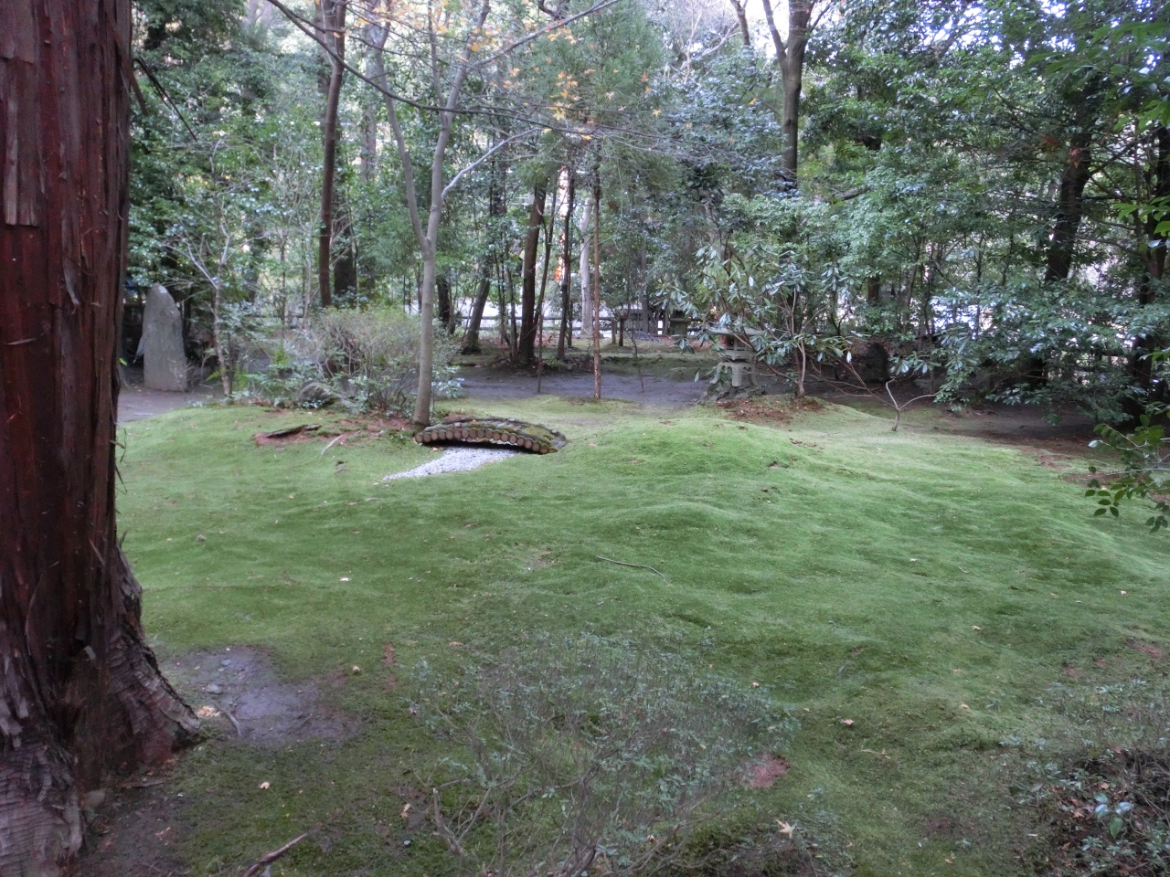 嵐山でトロッコを降りて散策していると野宮神社の横を通り、看板にじゅうたん苔と書いてあったのでのぞいてみました。奥の方に庭があり、苔がみどりのじゅうたんのように生えていました。苔寺まで行かなくても立派な苔が見れるんですね。