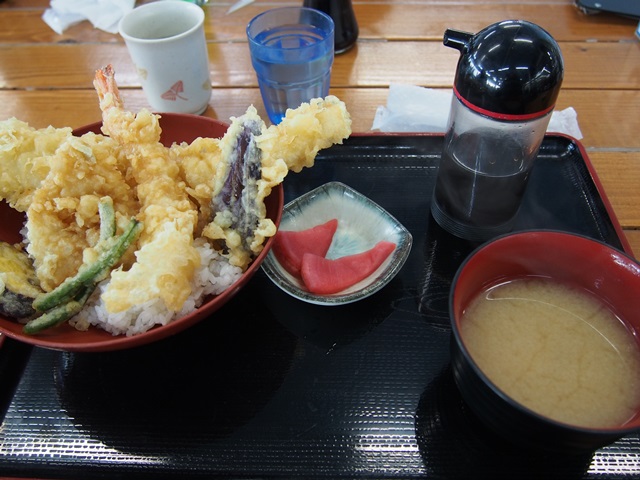昼食時とあって席に通されるまで20分ほど待ちましたが、天丼やアジフライなどどれも美味しくいただきました。お刺身も新鮮です。