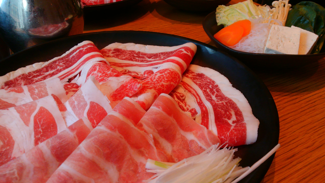しゃぶしゃぶ用の肉は豚、牛、鴨の三種類。