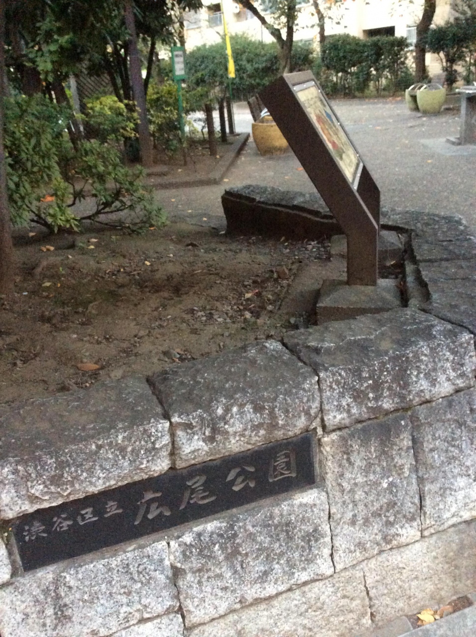 明治通りの天現寺橋の交差点からすぐの所にあります。縦に長い形をした公園ですが、この辺りは都電の広尾電車営業所の車庫があった所です。都電は交通渋滞の原因となったことから次々に撤去されていったそうで、公園入口にひっそり都電車庫跡の説明版があります。