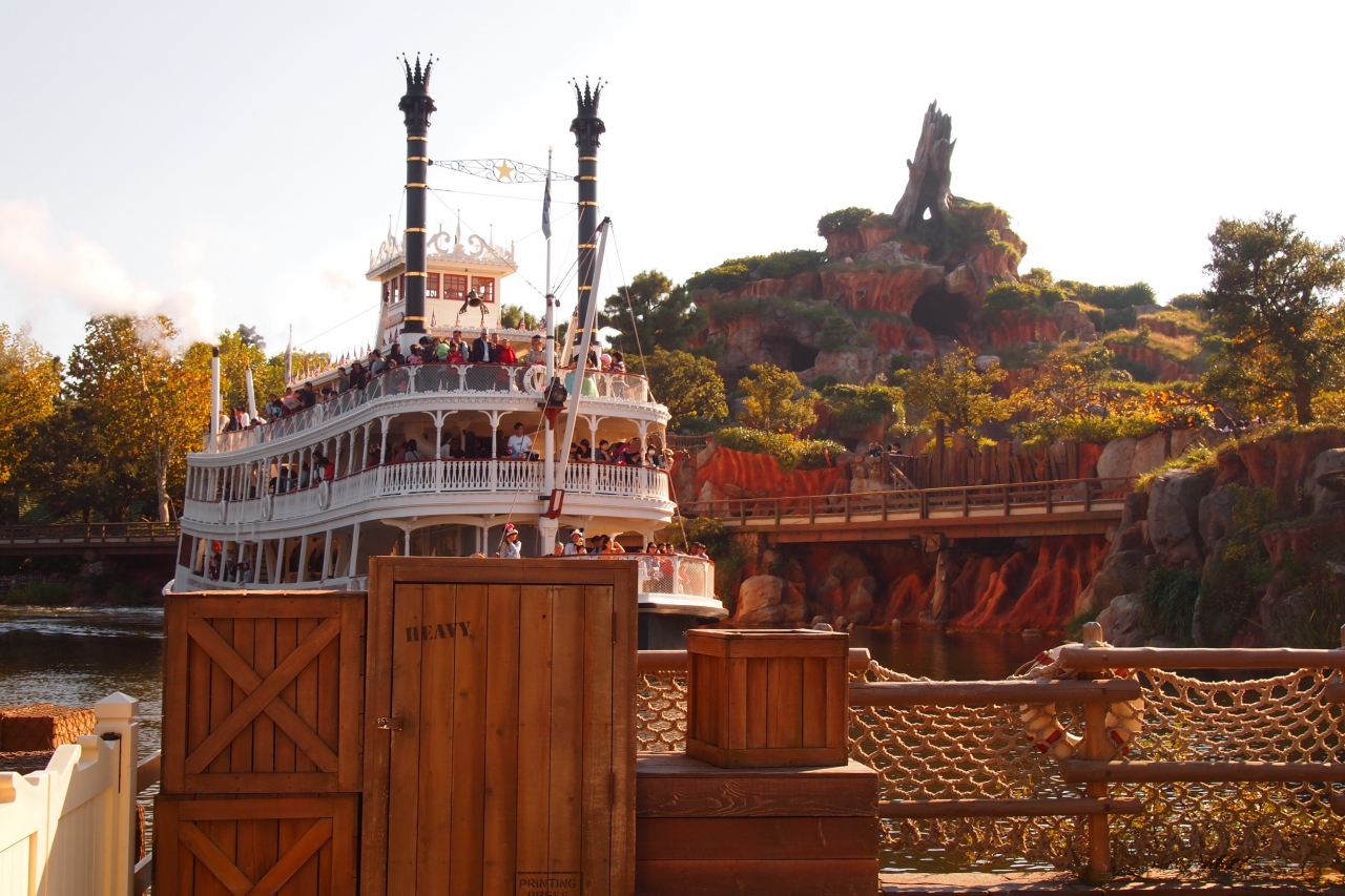 船が好きだったウォルトディズニーが力を入れていたこともあり、出発時のアナウンスはウォルト本人の声が使われているとのこと。ゆったりとディズニーの敷地内を遊覧する大型客船はとても立派で、ぼーっと外を眺めているだけでもとても気持ちが良い空間でした。