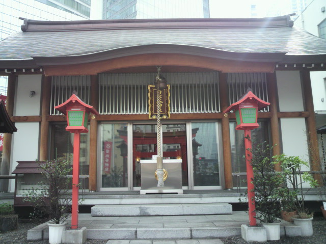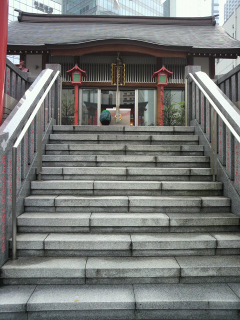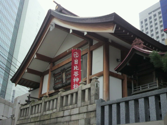 第一京浜と環状2号線通りの交差点で、多数の人達の行き交う中に、信心深くお参りをするサラリーマンや女性が目に付く日比谷神社です。