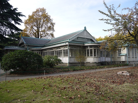 明治・大正時代に皇族が御苑を訪れ、散策やスポーツを楽しみその時の休憩施設として明治29年(1896年)に建てられた洋館で当時アメリカで流行った建築様式を取り入れたモダンな建物です。昭和20年の戦争でほとんどの建物が焼失する中この建物は被害を免れ今日に至っています。