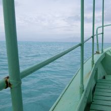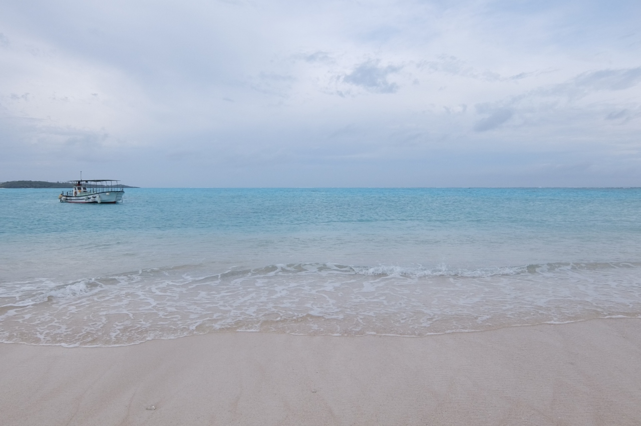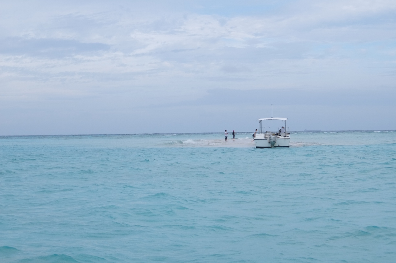 初めてのグラスボートに乗り出発。船の中央部が掘りごたつのように深くなっていて、底の部分が透明で海の中が見えます。干潮時しか現れないという百合ヶ浜、下調べをしたわけではないのですが、行った時間にちょうど出現していて上陸できました。生憎の曇り空でしたが、それでも綺麗でした。百合ヶ浜の星の砂を年の数だけ持って帰ると幸運が訪れる、という話を事前に聞いていたのですが、着いた時すっかり忘れていました。これから行かれる方は、是非やってみて下さい。帰りはウミガメなどを見ながら戻りました。