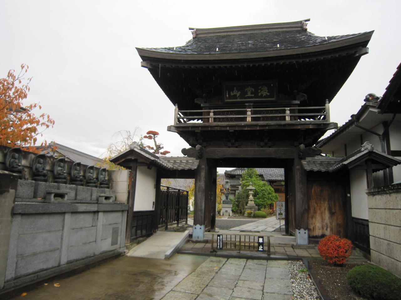 日輪寺の隣です。石幢は上田市指定有形文化財だそうです。本堂前右に柵で囲まれてありました。珍しい貴重な物のようです。このお寺にはいろいろな物がありました。山門入って右に成田山の分身のお不動さん、稲荷神社、左に清涼大師堂、念珠廻し、そして大黒天等説明板を添えありました。境内は綺麗に整備され春は桜が咲き綺麗でしょう。