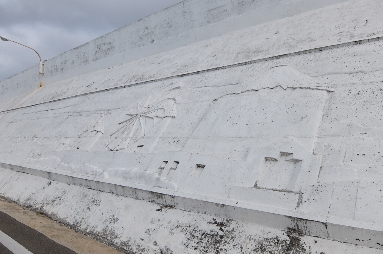 ミコノス島の素晴らしい景観を彷彿とさせるような通りなのかな?と思い訪れたのですが・・・白いモニュメント風な建造物が少々、あとはギリシャの風景を彫ったような白壁が続いているだけ。古いのか壁は傷んでいたし、「まぁ、別に・・・」という感じです。ヨロンマラソンのスタート地点があり、なぜかそちらの方に興味が惹かれました(笑)。