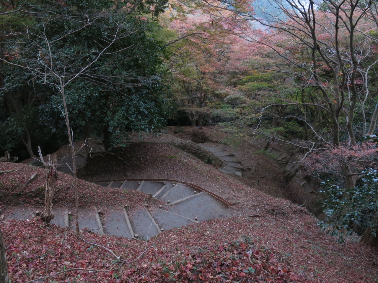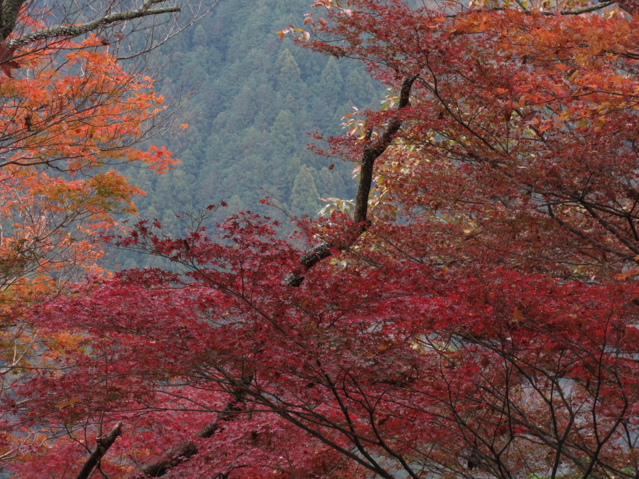 紅葉ーズンに出かけてきました。香積山の裏手から山頂までの山道。概ね15分くらいで頂上の展望場に着きました。木々が茂っているので、360度パノラマは無理ですが、木々の隙間から足助の町並みが見えます。生憎の曇り空でしたが、紅葉の彩りも楽しめましたよ。