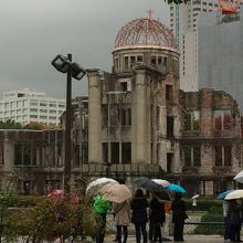 学生時代に修学旅行で行って以来、何十年ぶりかに訪れました。路面電車から降りてすぐでした。原爆ドームの周りを一周してみると、真正面からはないものが見えたりして新鮮な感じがしました。