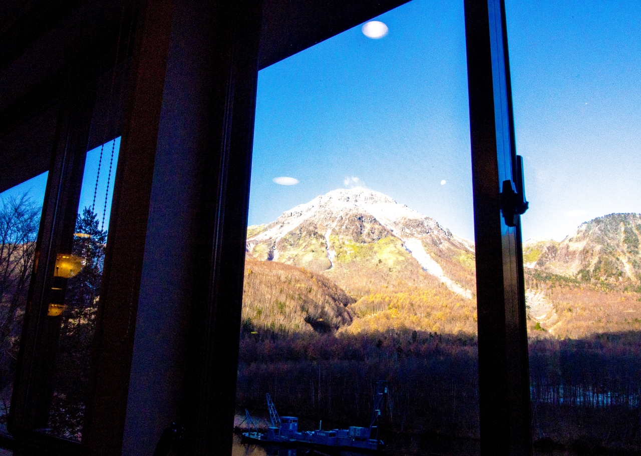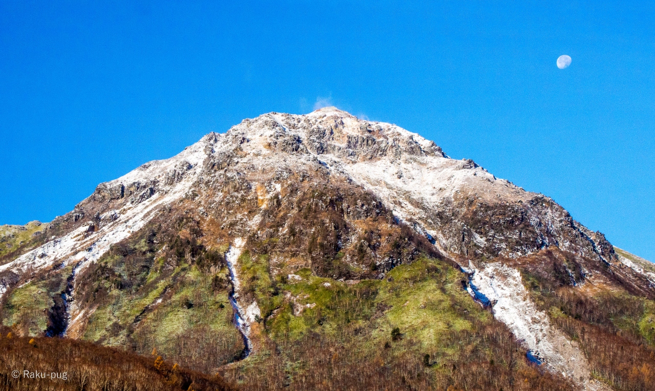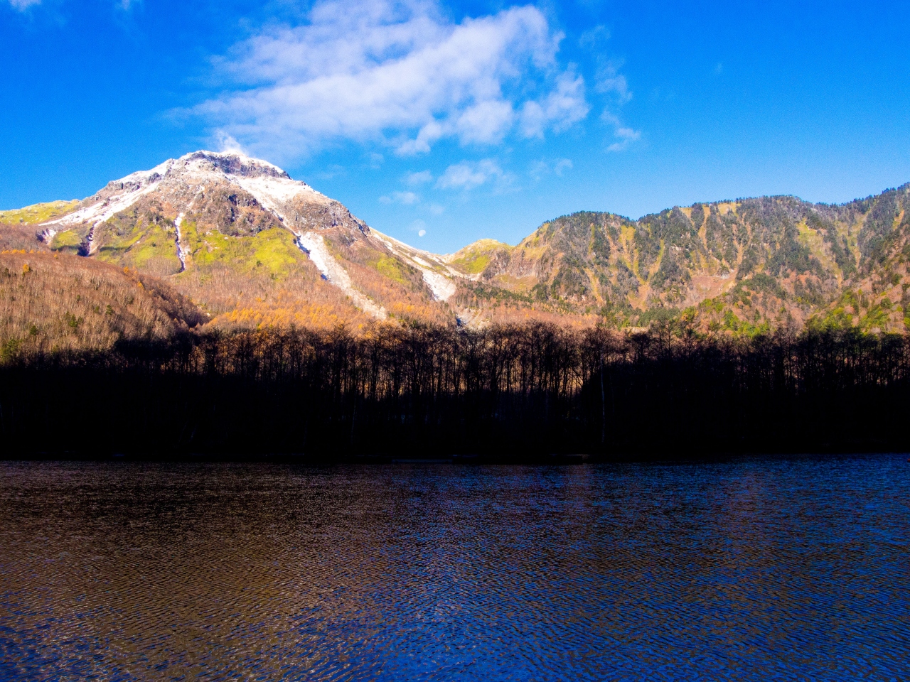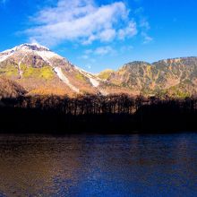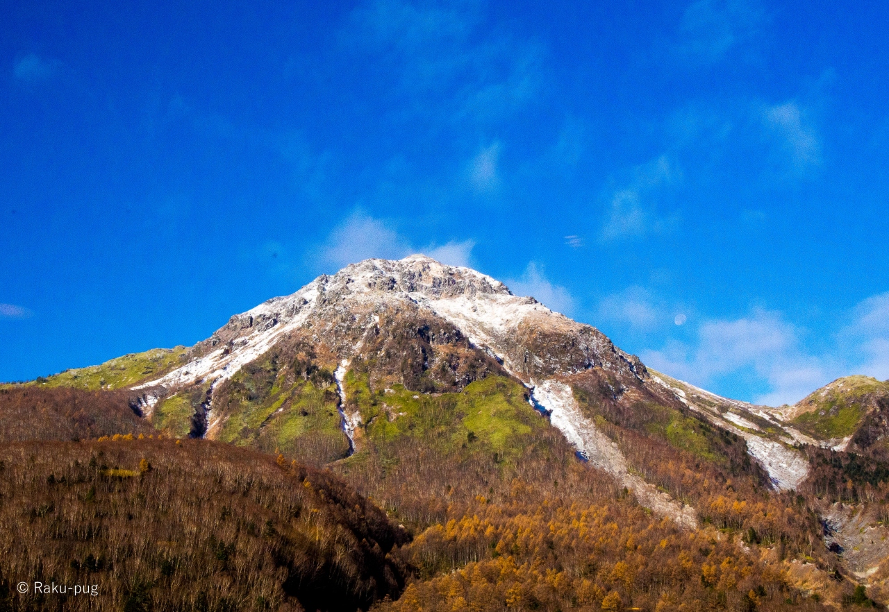 晴天の 焼岳 雪が かぶって 素晴らしい