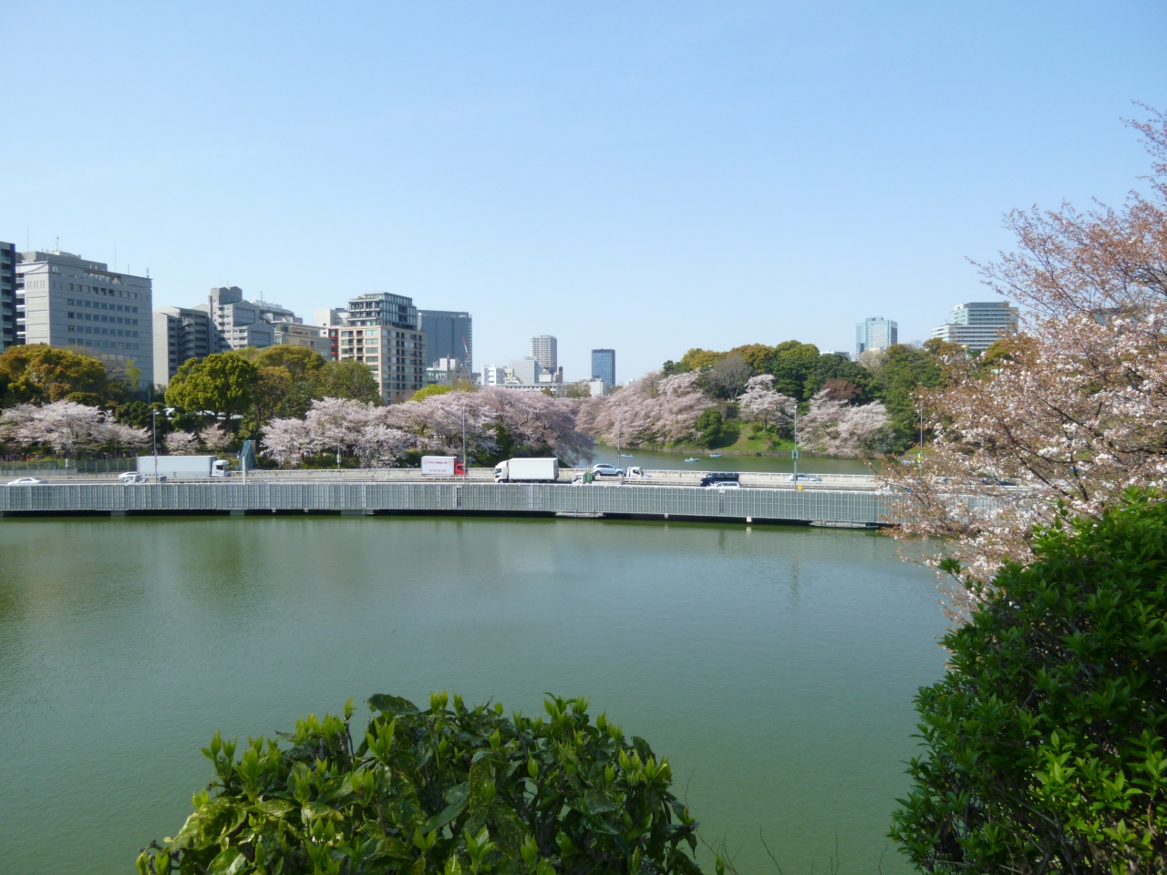 この千鳥ヶ淵の景観と皇居の中と言う事を考えて首都高速都心環状線は堀に沿って低くさらに地下化されています。