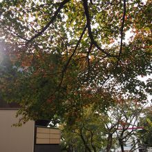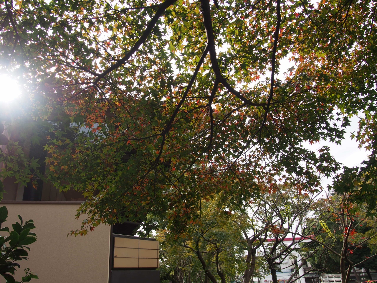 天園、獅子舞を経てのハイキングの途中に立ち寄りました。紅葉は山の中よりもこちらの方が早いようです。訪れた日は結婚式が行われていたようで、社務所にはきれいな花が飾られていました。白い鳥居は曇りにはあまり映えずやや残念。