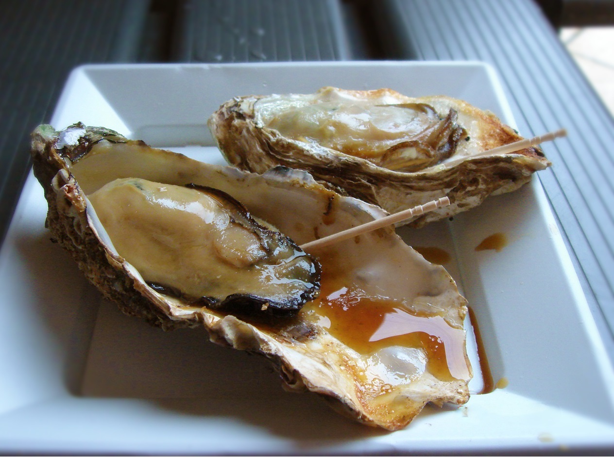 塩を振った焼き牡蠣を二つ、目の前で焼いて出してくれるので、店員さんのお勧め通りに片方にだけ酢醤油をかけていただきました。二つの味を楽しむめて、どちらもおいしいです。