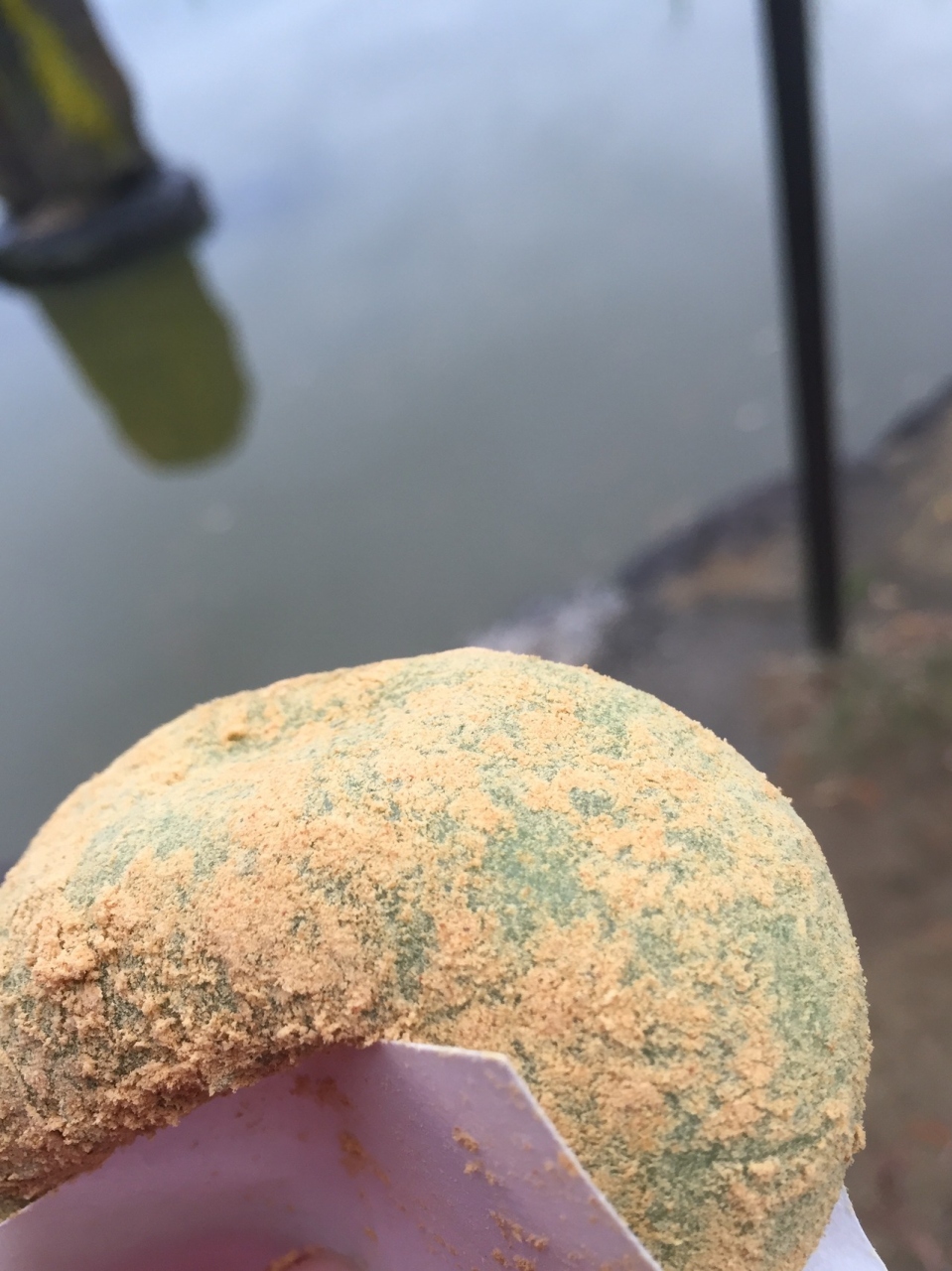 実際にお餅をついている様子を見れます。高速もちつきです!そして、つきたてのよもぎ餅をすぐにその場で購入する事ができます。温かくて、とても柔らかくお餅が伸びます!よもぎの味もしっかりとあり、甘さ控えめです。