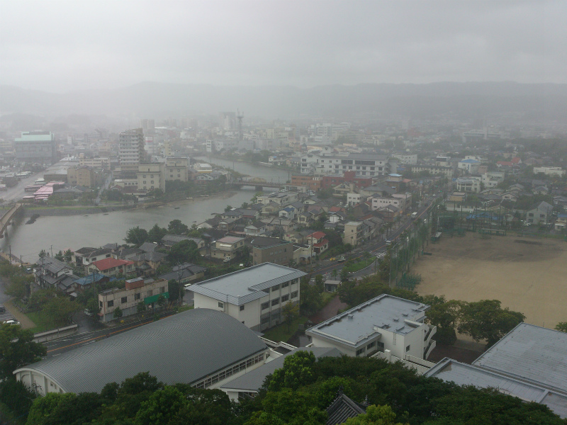 最上階の展望所からは,唐津市街や虹ノ松原が有る松浦潟などが一望できます。雨の日に行ったのが残念でした。