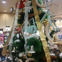 店内には、クリスマス時期もあってか、アウトドアコーナーに、自転車でできたクリスマスツリーがあります。