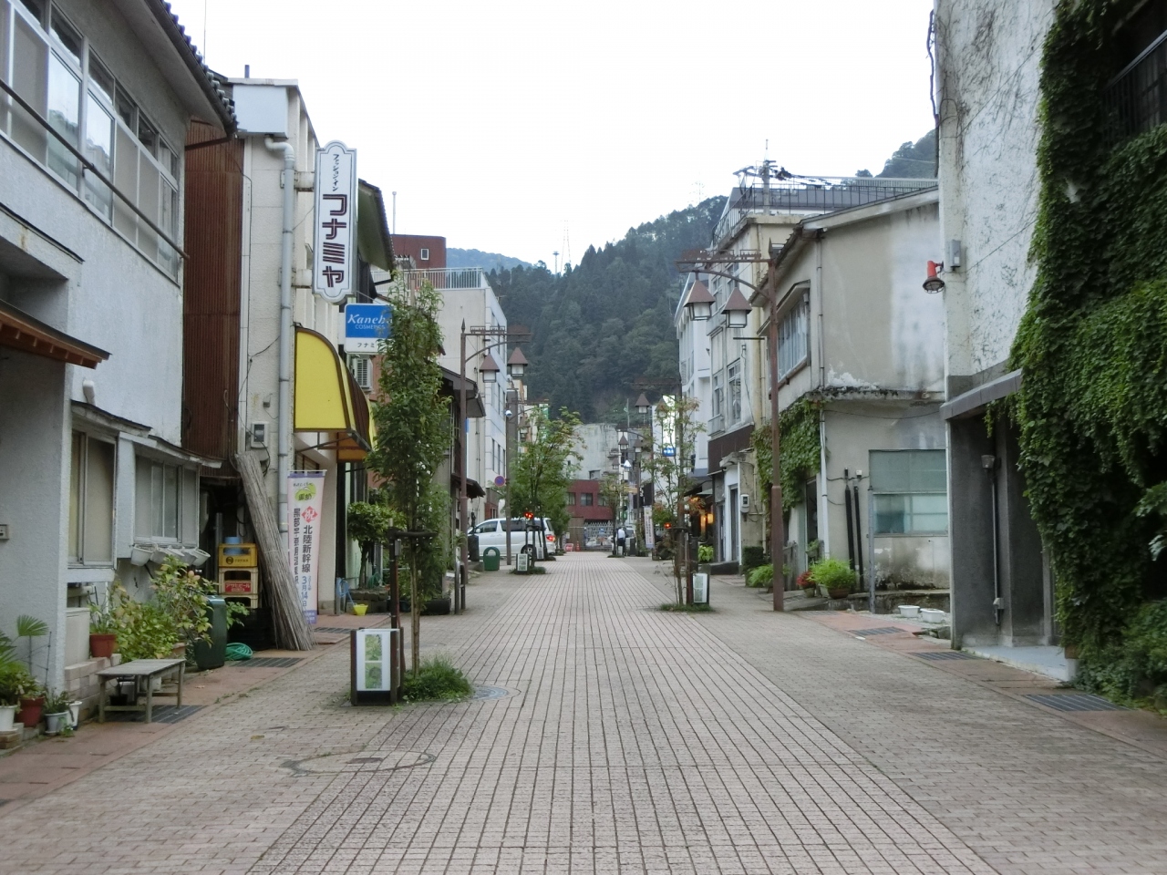 早めの宿への到着になり、夕食までの時間つぶしに久しぶりに訪れた宇奈月温泉街を散策してみました。JRやトロッコの駅付近は、喫茶店やお土産店・お菓子屋でそれなりの風景でしたが、ホテルや旅館街のとおりは閉店したお土産店やスナック・カラオケ店でひっそりと静まっていました。それに人通りが少なくなっていたのには驚きました、でも温泉は昔と変わらず健在で一安心。
