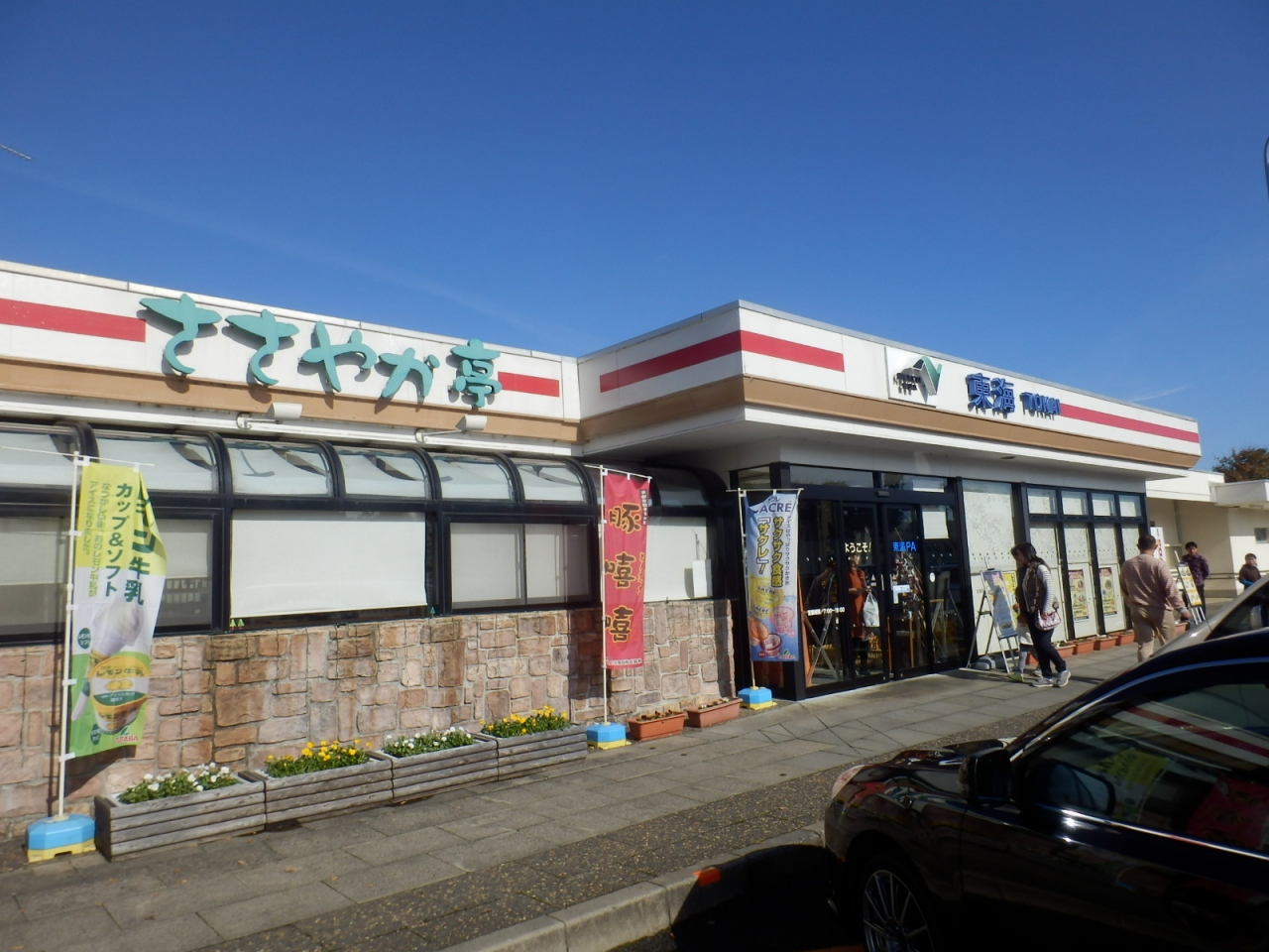 常磐道の東海パーキングエリアの下り線を利用しました。駐車場の奥にはETC専用出口もありました。