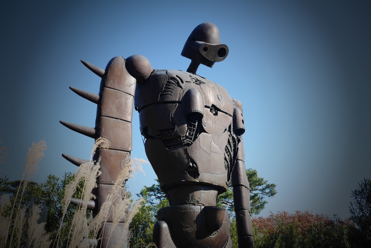 ジブリ作品の様々な展示やカフェ、屋外にはラピュタのロボット兵やラピュタ語が書いてある石があり、とても見応えがあります。