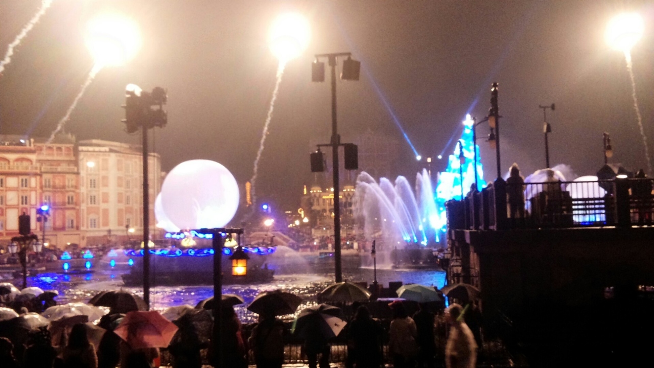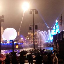 プロジェクションマッピングと、花火やレーザーショー、音楽やキャラクターが船に乗ってやってきたり素晴らしいショーです。