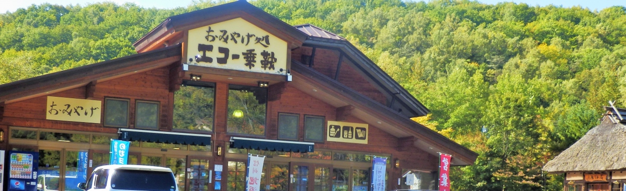 乗鞍休暇村行パスの乗鞍高原観光センター前バス停から徒歩2分にある土産物、民芸品店、センター前は広い駐車場がありその奥左の道路沿い、目に付いたのが山すもものジャム。600円、地元産の商品も多数あり興味をひいた