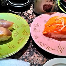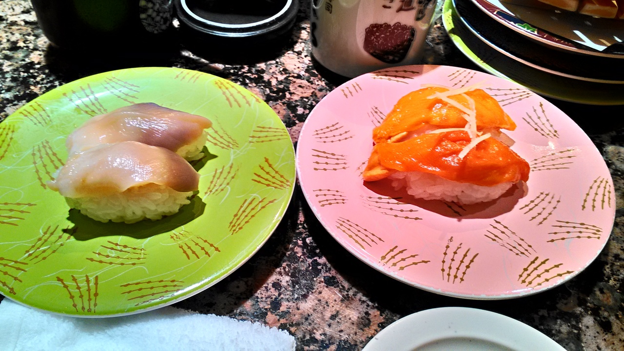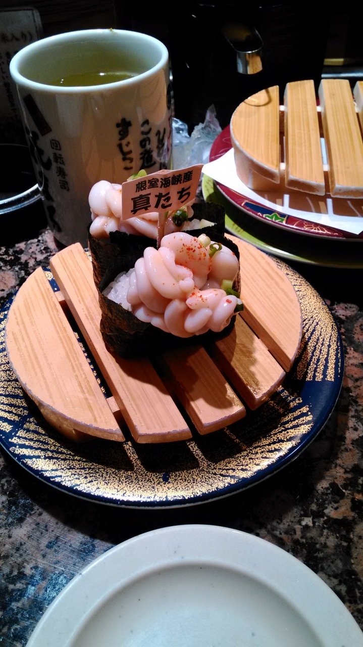 受付機に電話番号を登録すると、順番が来た際に連絡いただけるようでしたが、まあ、回転ずしだし回転も速いだろうとそのまま待つことに、結果30分以上待ってようやく席に着くことができました。