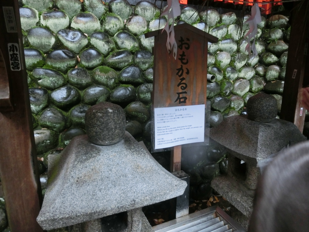 石灯籠の頭の部分にある空輪(頭)を持ち上げ、思ったよりも軽かったら願いは叶うし、重かったら、アウトなんだと。