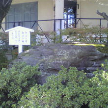 殿中において吉良義央を切り付けた事件で、即日切腹の処分を受け、田村右京大夫邸の庭先で切腹した際に、その血がかかったと伝えられている梅と石だそうです。