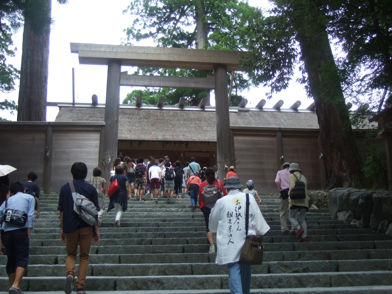 宇治橋を渡り、五十鈴川を眺め、長い砂利道を歩いてようやく伊勢神宮の内宮までたどり着きました。いよいよ参拝です。聖なる宮は撮影禁止です。皇室の御祖神にあたる天照大御神が祀られているとのことで、さすがにここまで来ると身が引き締まる思いでお参りしました。子供たちも神妙な顔で私の横でお参りしていました。お参りをすませて内宮を出た後、久しぶりに伊勢の斎宮と業平朝臣の昔事のことなどがちょっと心をよぎったりもしました。